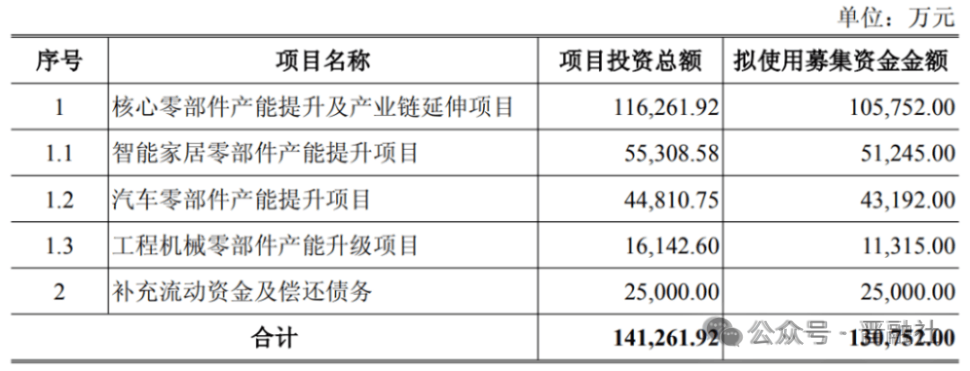 汽车零部件产能提拔项目实施从体为华翔汽车科技,年净利润为3978.06万元,拟利用募集资金4.32亿元。引入从动化AI视觉检测设备提拔工艺及产质量量,将构成年产工程机械零部件10.07万吨,拟募资13.08亿元,年净利润为6884.88万元,进一步提拔“短流程连铸”工艺的使用,华翔广东(佛山)顺德工场人形机械人细密零部件首条出产线,