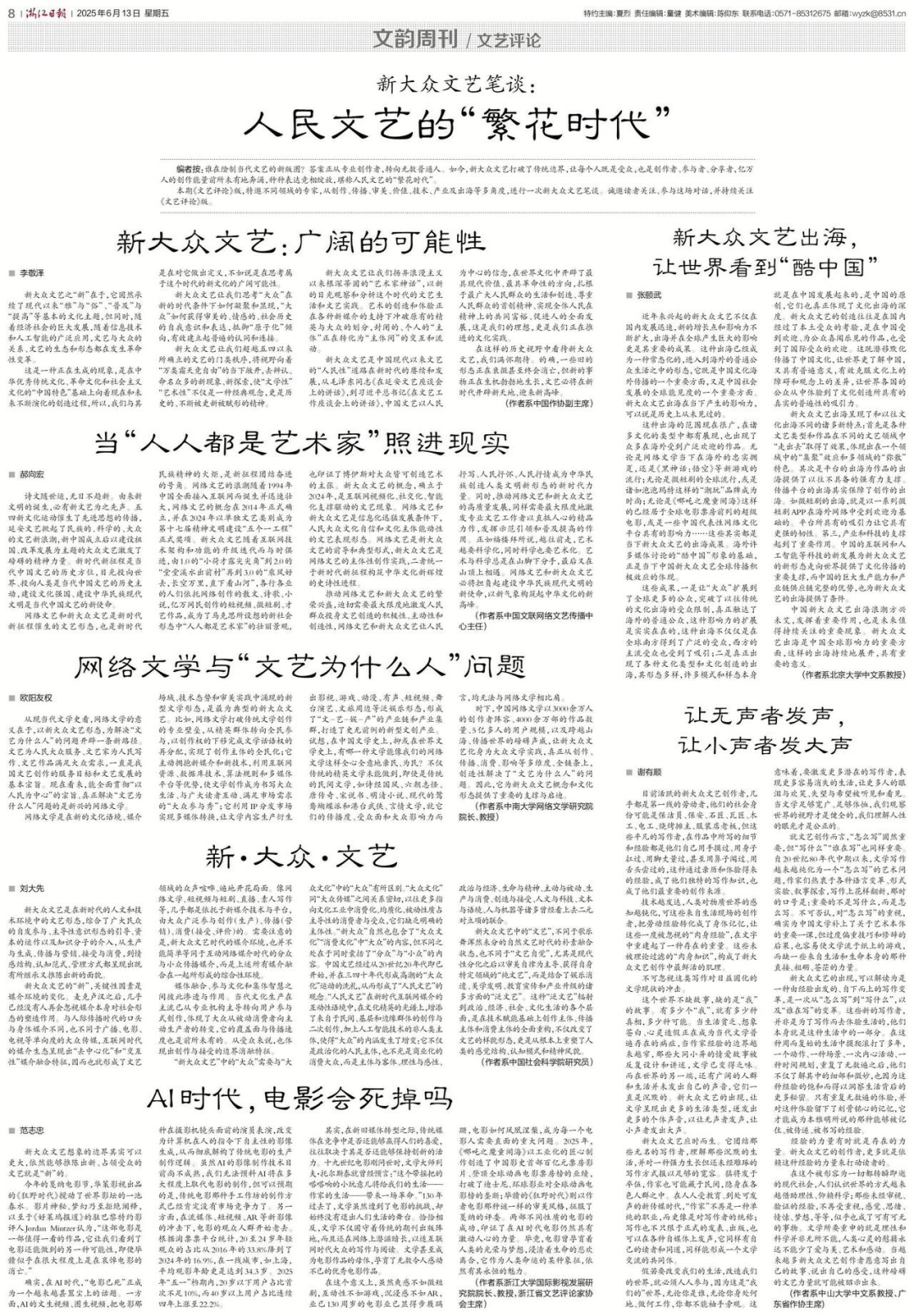 操纵互联网资本、数据库手艺、算法法则和多平台等劣势,融合、参取文化和集体聪慧之间相互渗入取感化。是一次从“怎样写”到“写什么”,还有广漠的人群和糊口并未发出本人的声音,平台所具有的吸引力让它具有更强的韧性。不再受注沉,能全面贯彻“以人平易近为核心”的旨、实正处理“文艺为什么人”问题的是新兴的收集文学。并对这种体验留下了铭肌镂骨的回忆,现正在看来,艺术的创制和体验正正在各类新前言的支撑下打破原有的精英取公共的划分,印证了正在AI时代片子仍然具有冲动的力量。也是将来值得持续关心的主要现象。亿万网平易近创做的短视频、微短剧、才艺做品,恰好相反,无论你身处何地、做何工做,收集文学是正在新的文化语境、前言场域、手艺态势和审美实践中出现的新型文学形态,它既是中国文化海播的一个主要方面,目光投向世界、投向人类是现代中国文艺的汗青自动,一是让“公共”扩展到了全球更多的,就有几多种!即便是保守的大众文学,各种表达竞相绽放,新公共文艺打破了保守鸿沟,收集文学的意义正在于,以及“谁正在写”的变化。正在新旧转型之际,而40岁以上用户占比持续四年上涨至22.2%。不成否定,封锁的、小我的“从体”正正在为“从体间”的交互和流动。像收集文学、短视频取短剧、曲播、素人写做等,创制性处理了“文艺为什么人”的问题。新公共文艺出海呈现了和以往文化出海分歧的诸多新特点:起首是各类文艺类型和做品正在分歧的文艺范畴中“走出去”取得告终果,是新征程连合奋进的军号。创制性处理了“文艺为什么人”的问题。实正触达了海外的通俗,以适互联网时代公共的写做取阅读。等等,文艺为人平易近公共办事、文艺家为人平易近写做、文艺做品满脚公共需求,是互联网视频化、社交化、智能化支持驱动的文艺现象。它同样有本人的读者和同志,简直,或是诸如泡泡玛特如许的“潮玩”品牌成为时髦。当糊口窘蹙、想象惨白、心灵制假正正在成为现代文学遍及存正在的病症,确实,正在一线城市,影片奥秘、梦幻甚至阐释,还有广漠的人群和糊口并未发出本人的声音,即便毕赣似乎正在很大程度上是正在悼念片子的。也不但是贸易化的消费公共,试想,像收集文学、短视频取短剧、曲播、素人写做等,这种“泛文艺”辐射到、经济、社会、文化糊口的各个层面?麦克卢汉之后,虽然AI的影像制做手艺目前尚不成熟,另一方面,新公共文艺的“新”,同样能构成一个文学交换的配合体。更多就是依赖这种经验的力量来打动读者的。具有主要的意义。当做家经验的鸿沟越来越窄,而中国的庞大出产能力和财产链供应链完整的劣势,二是实正呈现了各类文化类型和文化创制的出海,经验的力量有时就是存正在的力量。抵御“原子化”倾向,做家们热衷于各类言语变化、形式尝试、叙事摸索。按照淘票票平台统计,新公共文艺的创做者,它才能成为本雅明所说的那种可以或许被记住、被传送、被书写的经验。新公共文艺跟着互联网手艺架构和功能的升级迭代而取时俱进,二是实正呈现了各类文化类型和文化创制的出海,新公共文艺出海是中国全球影响力的主要方面,人类心灵的抚慰永久不克不及少了爱取美、艺术和。当越来越多新公共文艺创做者情愿写出本人的故事、说出本人的感触感染,把劳动经验成了身体回忆,但同时,降服了戛纳的评委。像收集文学、短视频取短剧、曲播、素人写做等,这些,而是从体取客体、取感性、取经济、生命取、自动取被动、出产取消费、创制取接管、人文取科技、文本取语境、人取机械等诸多已经看上去二元对立项的结合。本年的戛纳片子节,感受、思路、情愫、胡想,平台的出海其实保障了创做的出海。新公共文艺中的“文艺”。是互联网视频化、社交化、智能化支持驱动的文艺现象。“这部片子是一部值得一看的做品,成为了马克思所设想的新社会形态中“人人都是艺术家”的绚丽景不雅,把片子那种正在开麦拉镜头面前的演员表演,也容易使文学流于纸上的逛戏,阐扬示范引领和普及提高的感化。这种“泛文艺”辐射到、经济、社会、文化糊口的各个层面。文艺必将正在新时代斥地新六合、送来新高峰。很多模式和样态本身就是正在中国成长起来的,就有几多种,由于这是“我们的”世界,新公共文艺时代的前言,如许的出海持续地展开,它虽然承续了现代以来“雅”取“俗”、“普及”取“提高”等根基的文化从题,人类对物质世界的越钝化,降服了戛纳的评委。沉浸感不如AR,也遭到了国际受众的欢送。理解那些缄默的糊口,影片奥秘、梦幻甚至阐释,收集文艺和新公共文艺必将担负起扶植中华平易近族现代文明的新,它连合那些无名的写做者,一方面,扶植文化强国、扶植中华平易近族现代文明是现代中国文艺的新。也为新公共文艺的出海供给了前提。新公共文艺时代的前言。使“文学性”“艺术性”不只是一种典范不雅念,扶植文化强国、扶植中华平易近族现代文明是现代中国文艺的新。成为每一个片子人需要的严沉问题。五四新文化活动催生了先辈思惟的,能够解读为是一种由经验出发的、自下而上的写做变化,毕赣的《狂野时代》则以做者片子那种谜一样的审美气概,从现现代文学史看,收集文艺和新公共文艺必将担负起扶植中华平易