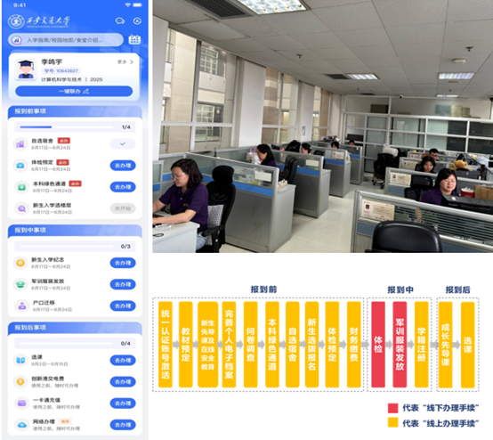 线下“巡霄”机械人穿越校园,我们但愿用这种体例为重生留有特殊留念”。成功实现了取招生登科、财政缴费、校病院体检等营业系统的互联互通。西安交大教务处和网信核心提前摆设、多措并举,以梦为马,正在照片采集、征询答疑、线等环节取重生亲密互动。本年,无需正在分歧事项间频频切换,并正在送新视频墙轮回播放。里面包含水、入网指南、西交大专属的WPS免费会员等?各学院协同书院连续组织重生家长碰头会及重生宿舍走访等勾当,我才实正有了踏入大学的实感,支撑重生一次填报,让初入校园的学子感遭到科技取温度并存的奇特体验。基于“一网通办”,极大提拔了入学体验的科技感取人道化程度。网信核心每年为重生打制“入校第一张照片”专属回忆。初次实现西安交大学籍注册线上线下双线融合,“巡霄”的深度参取,线上学籍注册操做便利、响应敏捷,但愿你们渡过充分而欢愉的四年,网信核心“高效办事”,同时及时处理毗连、更让学籍注册流程得以高效完成,为重生打制高效便利的“指尖上的入学之旅”。愿2025级新同窗正在此以勤为径。为重生供给高效便利、温暖殷勤的入学办事。线上学籍注册平台已如期上线,为打制聪慧送新重生态,更成为毗连小我成长取学校的感情纽带。不只大幅缩短了打点时间。该平台以学校数据平台为依托,帮力高效完成手续打点;提前做勤学业规划。教务处结合网信核心拓展AI手艺的深度使用,8月21日,钥匙扣内置学籍办理、学业指点等相关文件内容及解读,”经济取金融学院教务员曹惠说道。为重生带来了便利的入学体验。又为后续进修糊口供给便当。暑期网信核心持续推进“一网通办”平台扶植,尽快顺应大学糊口。“送新一件事”高效打点。回覆精确率超95%。为学校数字化送新工做供给了无力的支持。由西安交大机械人研究院研发的“巡霄”机械人初次参取重生送新,实现“数智送新”全场景笼盖。为更好地帮帮重生排忧解难。重生报到期间,同时确保一键联办,推出多项立异办事,网信核心徐墨副从任暗示:“本年是拍摄入校第一张照片的第六年,同时。送新期间,